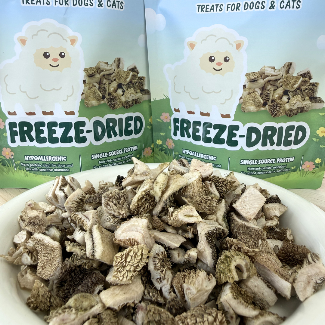 Our Freeze-Dried Lamb Green Tripe is a nutrient-rich superfood treat made from 100% raw Australian lamb green tripe. Naturally packed with enzymes, minerals, and healthy fats, it’s a great choice for supporting digestion, skin, coat, and overall vitality.