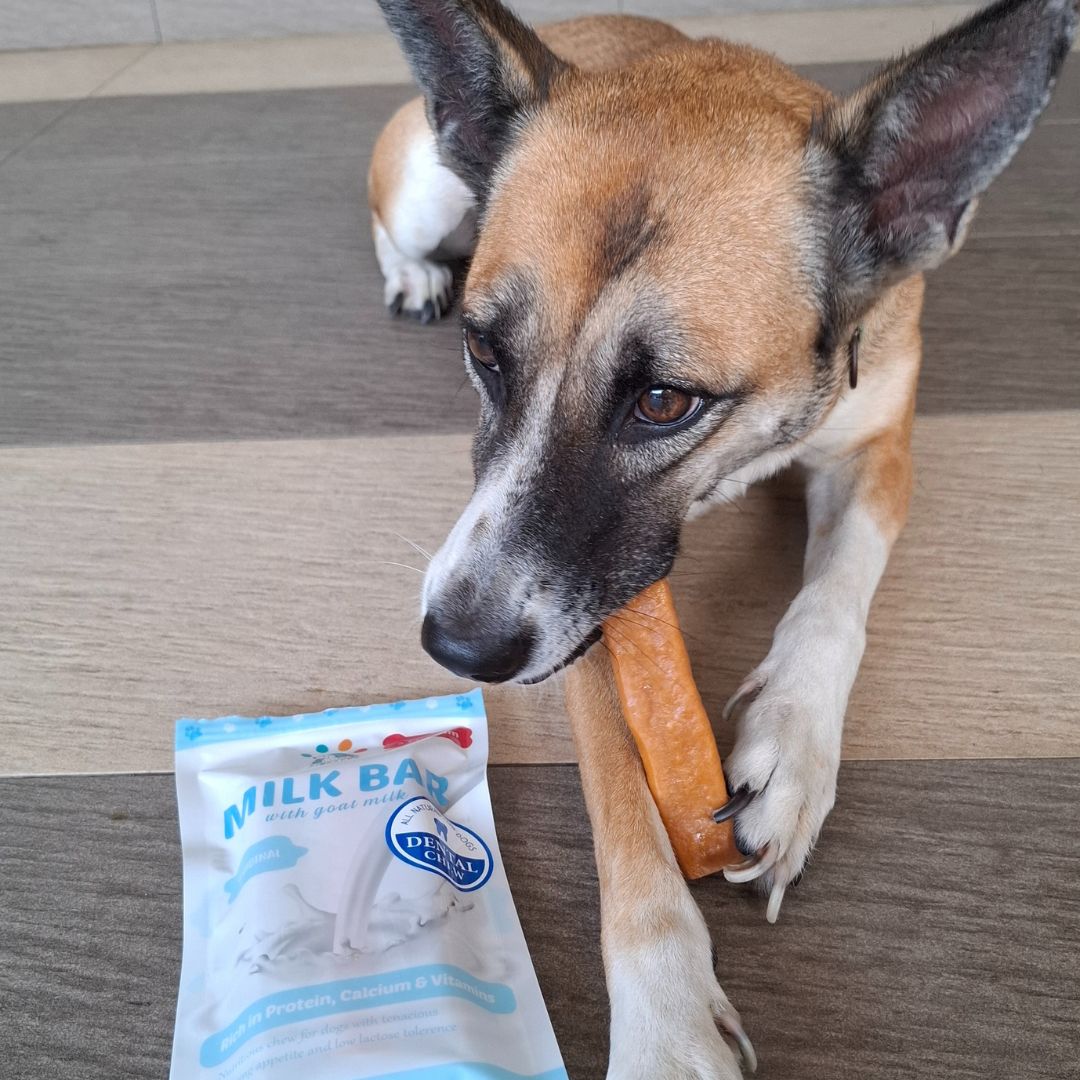 Gentle on sensitive stomachs, our Milk Bars are completely free from rawhide, gluten, and grains — making them a safe and easily digestible treat for dogs of all ages.